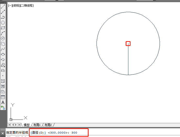 Step 5, draw a 300mm line and a circle in 300 radius.