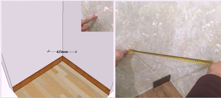 Step 1, Mark LEFT side 300mm from the corner.