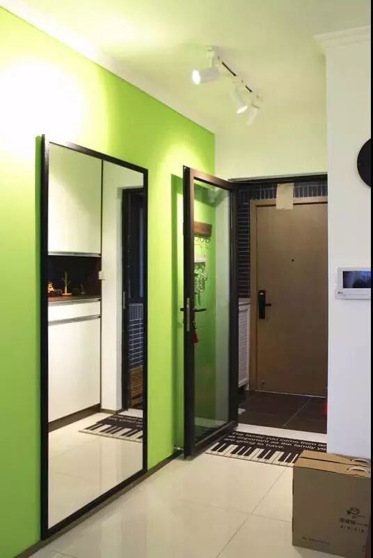 As we just had our baby, we didn’t want to make our apartment look too dull. So we painted the wall on the opposite of the storage cabinet into green, which is the same color as the wall of the kid’s room. I think, my baby will love that. Besides, there is a super large mirror on the wall. On one hand, it takes the function as daily dressing mirror. On the other hand, it can also visually enlarge the entrance hall, playing a role of decoration.