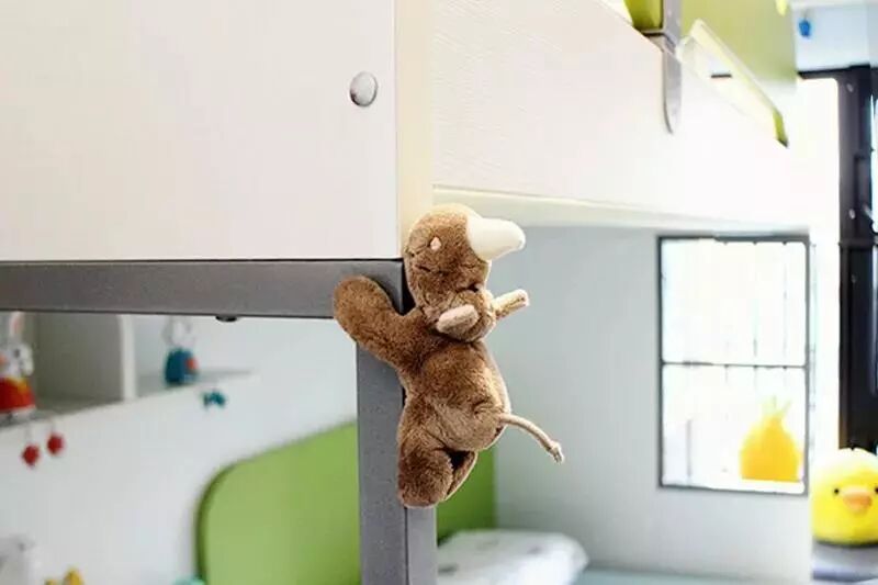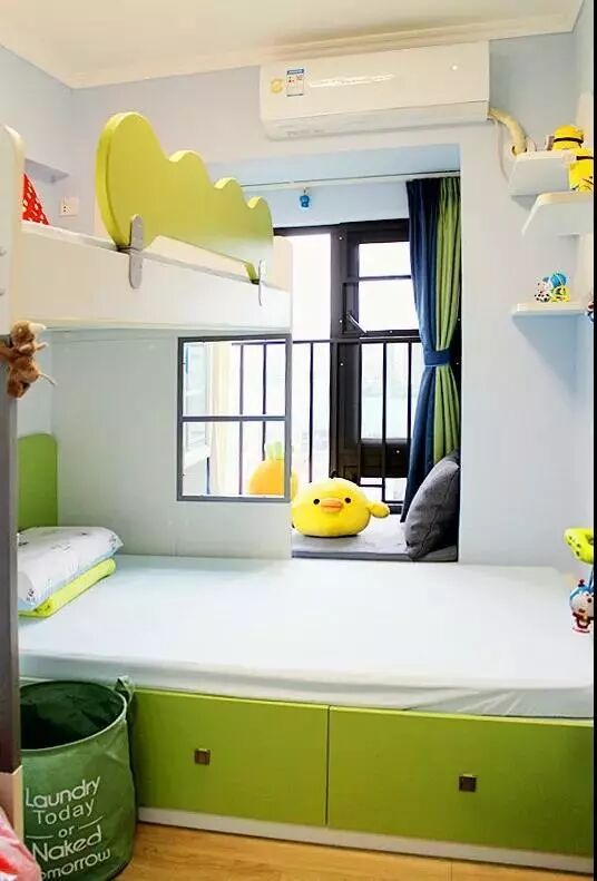 Finally, we chose the split-level bunk bed, making the small kid’s room look brighter. At first, it was a wardrobe instead of a desk beside the bed. Considering that a wardrobe here would make our baby feel depressed, and it would be better to set a desk. So we changed it.