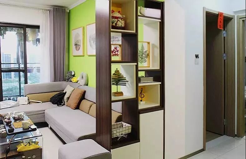 At the beginning, I didn’t want to place a partition cabinet beside the sofa because it might influence lighting and permeability. But the designer suggested making one here. After installation, the partition cabinet not only has little influence on the lighting, but also plays a role of decoration. Also, the small collections on the cabinet can show our taste. As for the bottom part of the cabinet, there is a special rack to keep the packing bags, no need to worry about where to put them.