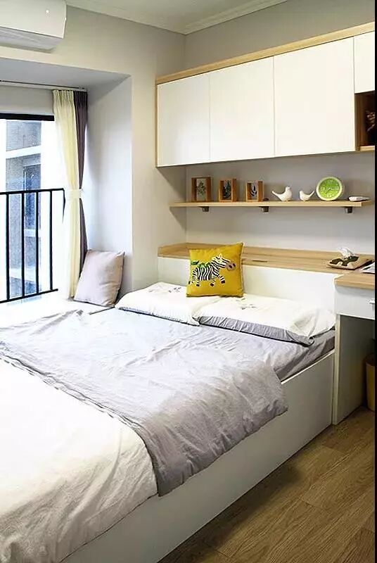 Since our rooms are not so big, so we put the beds beside the bay window. If there were two passages, it will be too narrow to go through.