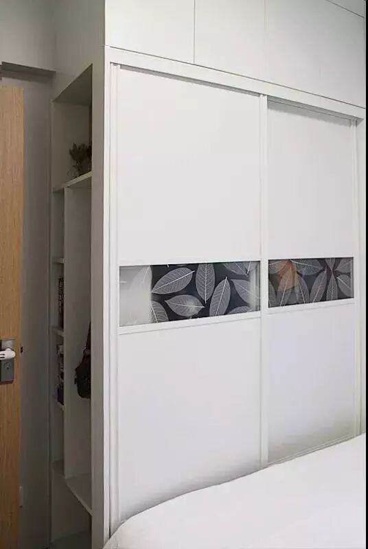 At the beginning, the design of the wardrobe was a full wall one, with 2 sliding doors but 3 doors of the top unit. Worse still, the gap of the basic unit and the top units were not in a line. It’s really hard for me to tolerate the asymmetric design. And there is a girder on the wall, so it is a little hard to design the wardrobe. But in order to meet my requirement, the designer finally made an open unit on the left side of the wardrobe. In this case, the design of the top unit changed into 4 doors and the whole wardrobe became a symmetric one.