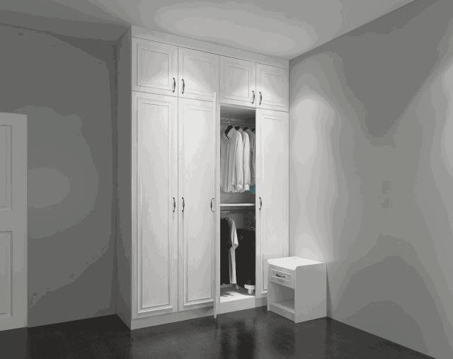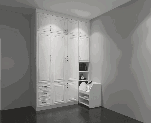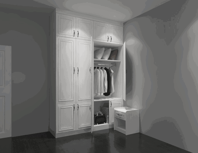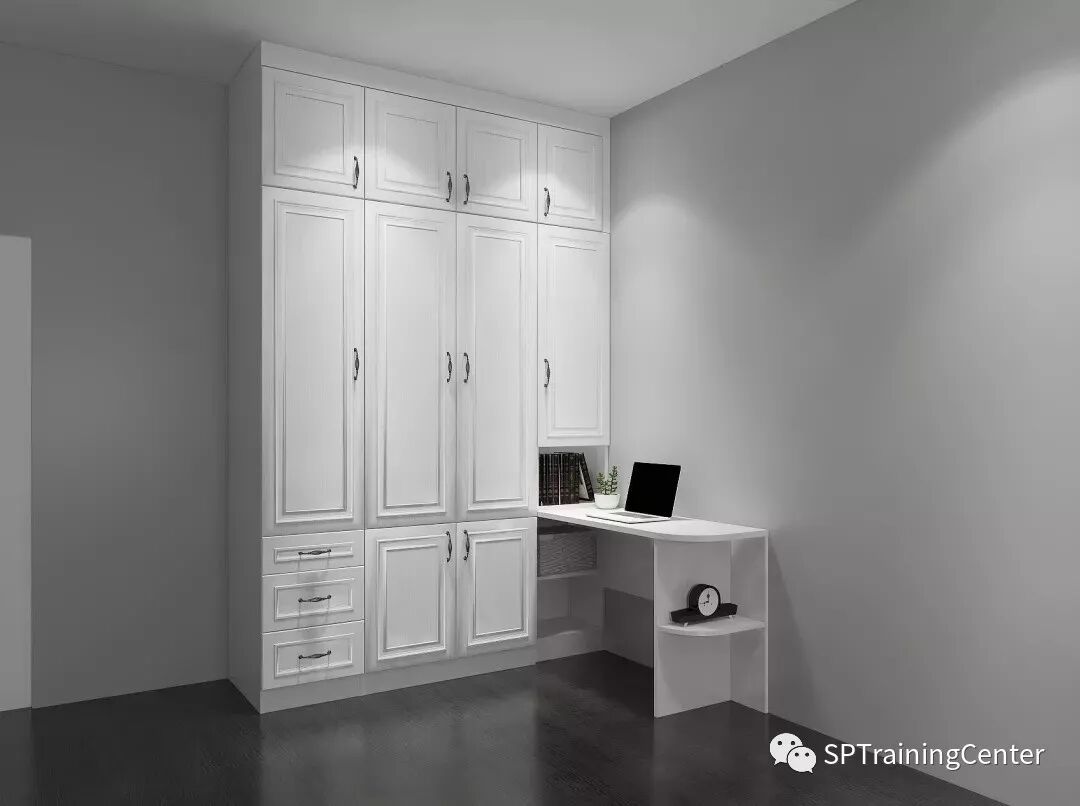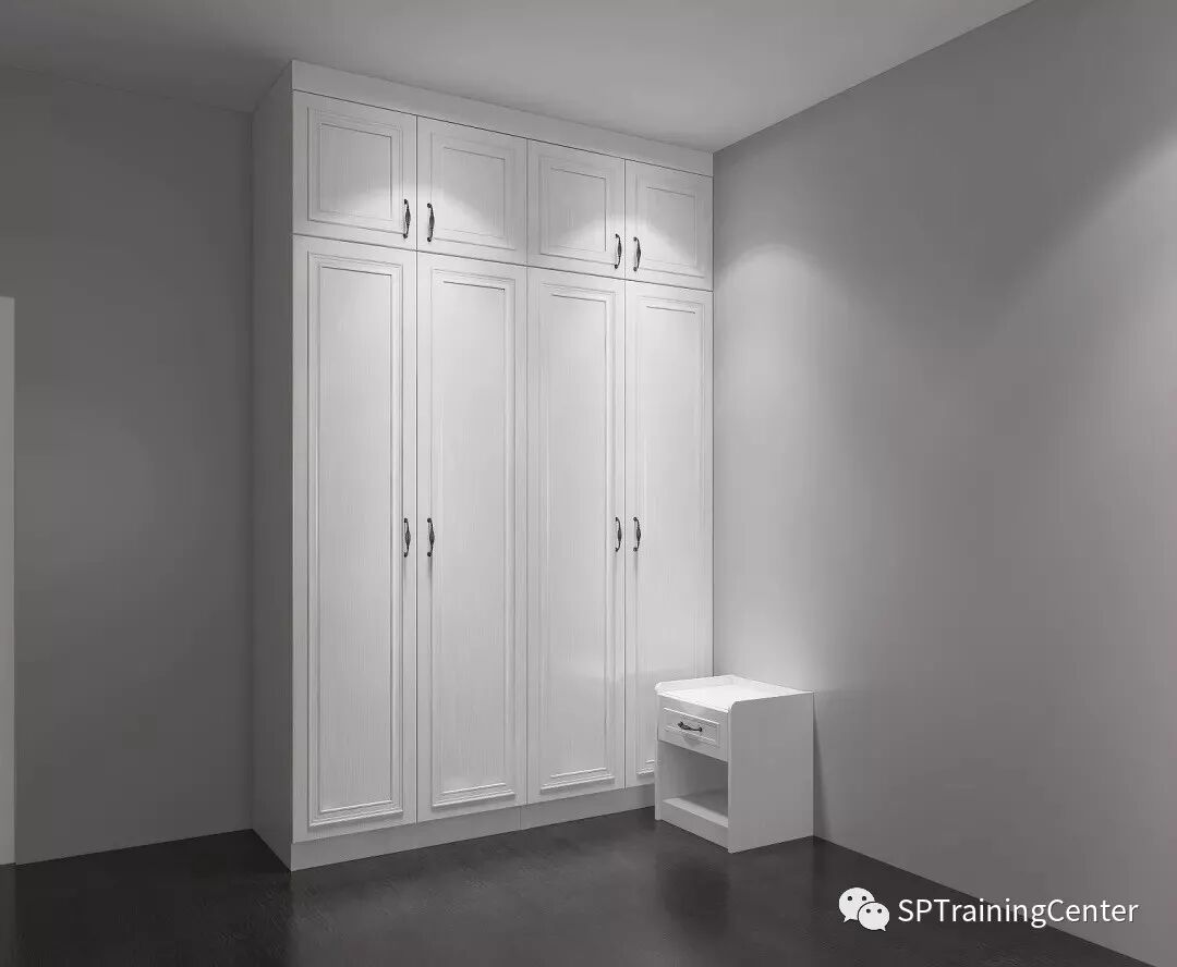 When designing rotating door wardrobe, different from the sliding door one, you need to pay more attention to the size of the passage and the interference of other cabinets, because it should be enough space to open the door. Moreover, you need to view the problems from customer’s perspective, and pay attention to the details.