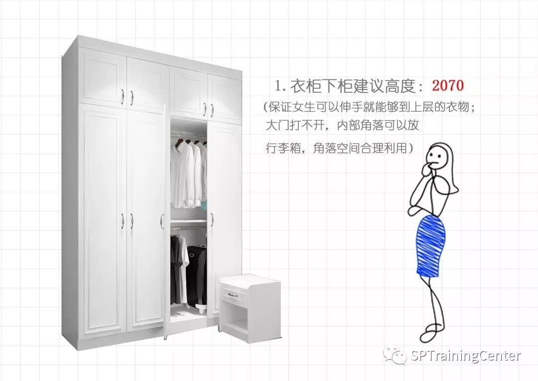In this case, it can make sure that the ladies can get the clothes on the upper side. Since that the right side door cannot be opened, the right side corner can be used to keep suitcases and so on, taking full use of the corner space.